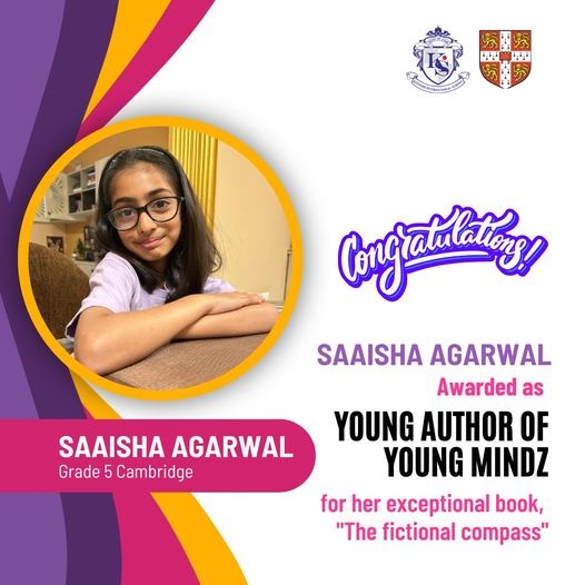 We are overjoyed to announce that Saaisha Agarwal, a talented student of Grade 5 Cambridge, has been recognized as a Young Author by Young Mindz! Her exceptional book, "The Fictional Compass," stood out among many entries for its creativity and masterful storytelling.