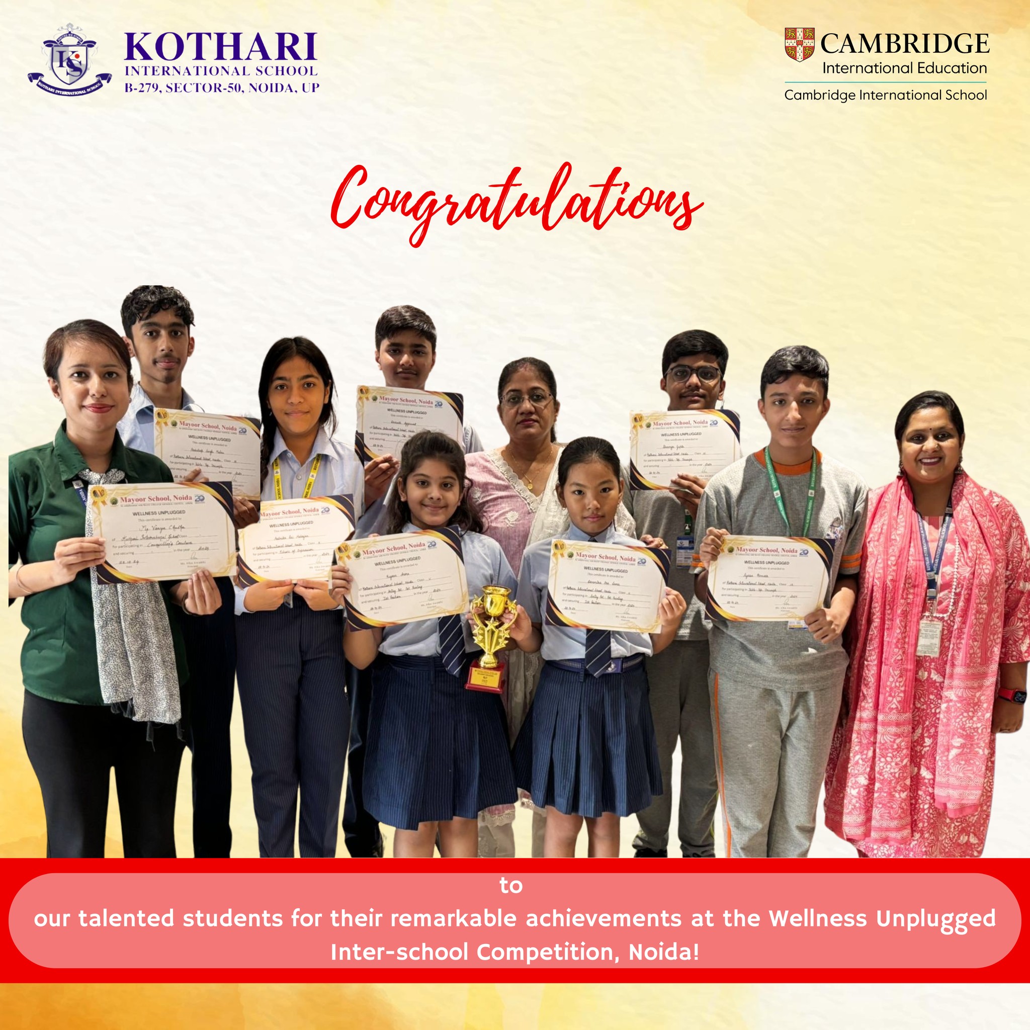We are thrilled to announce that our talented Cambridge Grade 5 students, Denorlha Ira Lama and Kiyara Arora, secured the First Position in the Artsy Pot Event at the Wellness Unplugged Competition hosted by Mayoor School, Noida on October 22, 2024. Their creativity in pot painting earned them a well-deserved trophy and Certificates of Appreciation!